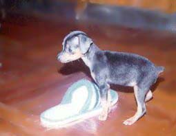 As another summer comes to an end here in fuzzydogland, another POM hits the spotlight. This month, our Pet of the Month is Mimi, a Miniature Pinscher born on September 3, 1984 and who lived in Hong Kong until she passed away last October, 1997. Checking back into our archives, we find one other instance when we awarded a POM posthumously (Flint back in December, 1997), and in that case as in this one, the award was well deserved.