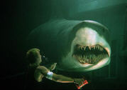 Yeah, well, you guessed it. It's not long before the sharks (smarter due to their bigger brains) get ideas of their own, and begin to wreak havoc on the ocean facility and its inhabitants. Let the chomping begin! In what feels like a Jaws meets Jurassic Park meets The Abyss meets Aliens kind of monster-fest, Deep Blue Sea quickly turns into a slick, fast-paced, high-energy special-effects rollercoaster ride with all the usual crunch-and-munch trappings. All the people on Aquatica, including owner Russell Franklin (Samuel L. Jackson), marine biologist (Jacqueline McKenzie), and chef Dudley (LL Cool J) become potential lunchmeat for the smart sharks, leaving the audience with two main questions on their mind: 1). who gets eaten next, and 2). how do they get eaten?